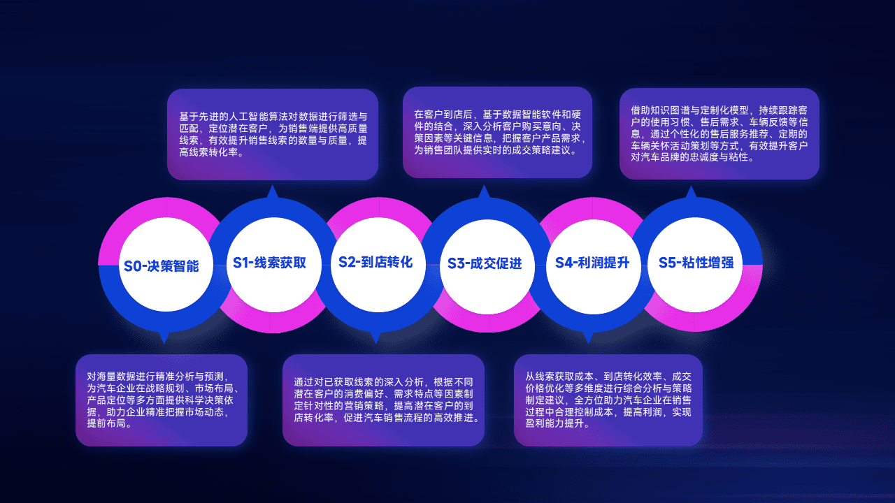 通过拓宽潜在客户来源、、优化线索分配并提高到店转化率,,,,以增强销售效率。。。同时,,,利用线索数据不断优化分析模型,,,有效提升转化率,,,扩大营销影响力。。。